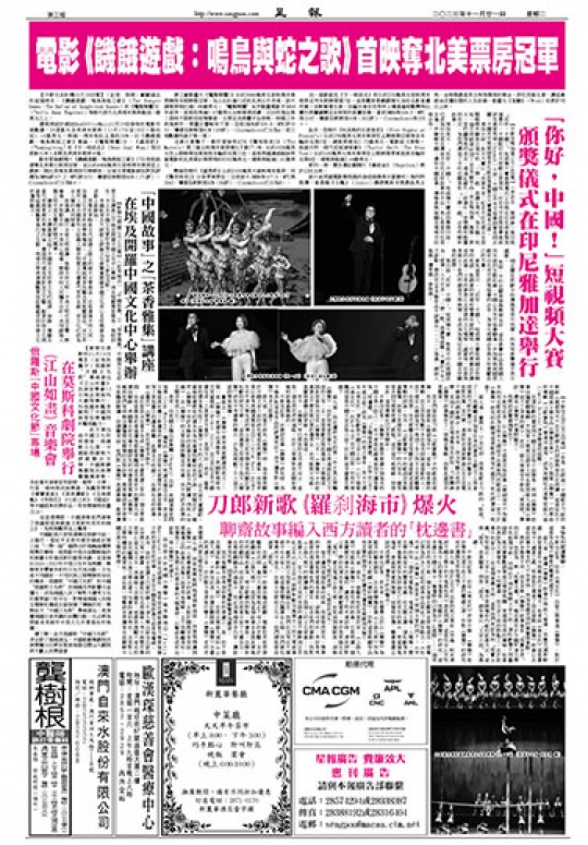電影《饑餓遊戲:鳴鳥與蛇之歌》首映奪北美票房冠軍