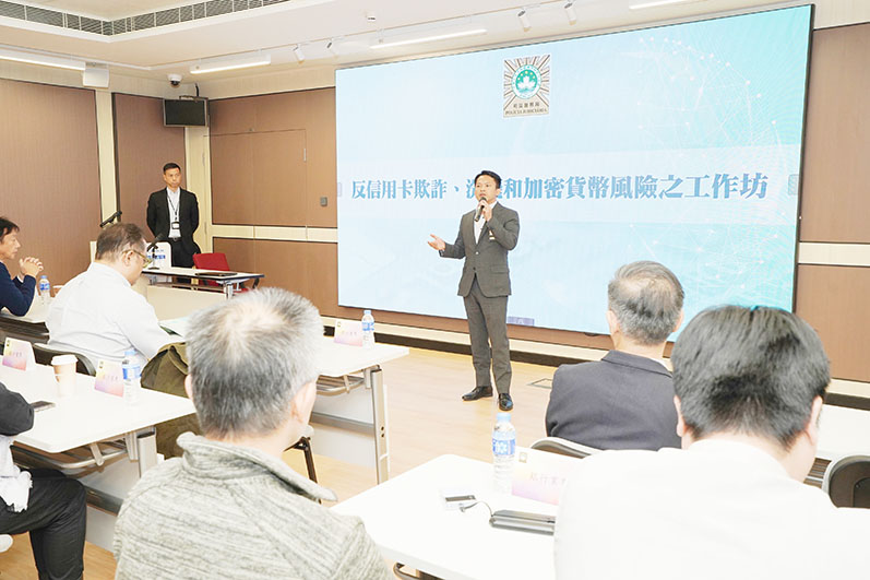 工作坊於11月17日下午3時在司法警察學校舉辦,由司警局副局長蘇兆強主持,並邀請4名香港銀行業界代表作專題講解,包括由萬事達卡客戶合規與欺詐部總監朱本中講解「信用卡詐騙趨勢及加密貨幣的風險」、聯款通安全風險總監陳偉業講解 「支付工具發展境況」、銀聯國際有限公司營運部主管李維正講解「銀行反洗錢挑戰及風險防範」,以及香港上海滙豐銀行欺詐行動部主管梁東安講解「銀行反欺詐挑戰與風險防範」。主講者及與會者就相關專題及實務工作中遇到的問題進行深入交流,大大促進與會者對當前電訊網絡及清洗黑錢犯罪的認識,共同提升應對相關犯罪尤其新型犯罪手法的能力。