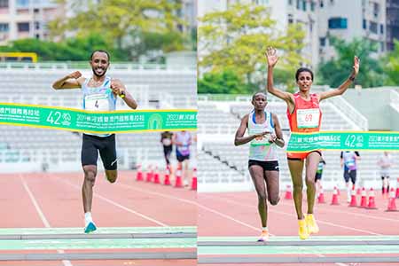 【特訊】由體育局、銀河娛樂集團及澳門田徑總會主辦的「2023銀河娛樂澳門國際馬拉松」昨日(3日)於奧林匹克體育中心運動場舉行,馬拉松男、女子全場組別最終分別由埃塞俄比亞選手狄比尼及安比奪冠,而王坤與趙彤彤則贏得馬拉松澳門運動員男、女子組的桂冠。