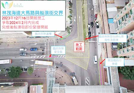 為緩解筷子基區、林茂區、高士德區因暴雨引起的水浸情況,市政署已於5月開展第一期俾若翰街路段箱涵渠及海濱休憩區工程,目前工程正如期進行,配合進度,經與交通事務局協調,將於12月16日於俾若翰街與船澳街交界及林茂海邊大馬路與船澳街交界建箱涵渠接駁口,以預備日後北面連接俾若翰街新建的雨水箱涵渠,南面連接林茂海邊馬路現有箱涵渠。俾若翰街與船澳街交界工程分兩階段進行,第一階段由12月16至31日,第二階段由明年1月1日至2月15日,進入第二階段工程範圍將有條件有所收窄,以更方便通車。林茂海邊大馬路與船澳街交界則爭取於2月內完工。