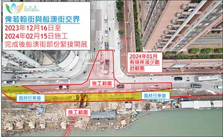 【特訊】市政署及交通事務局表示,筷子基北灣泵站箱涵渠工程正有序推展,將於12月16日起於俾若翰街與船澳街交界及林茂海邊大馬路與船澳街交界進行箱涵渠工程,期間將有臨時交通安排,敬請市民留意。