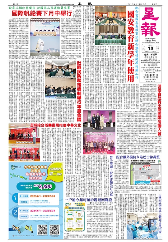 【特訊】由澳門特別行政區政府體育局、美高梅及北斗星航海賽事管理主辦,澳門特別行政區政府海事及水務局以及澳門風帆船總會協辦,珠海市文化廣電旅遊體育局支持的「2024美高梅澳門國際帆船賽」,將於2024年1月11日至14日在本澳舉行。