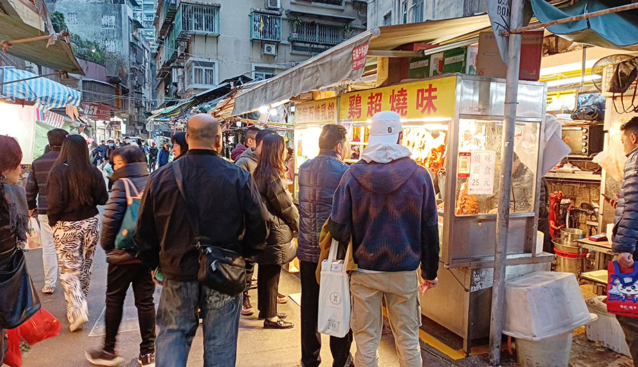 早上義字街一帶菜檔、肉檔買餸做冬的市民甚多,有燒味檔前,顧客大排長龍;在下環街市,亦有不少市民買餸。市民蔡女士稱,買了海鮮、雞、燒肉、湯圓等,計劃為家人準備冬至大餐,已花費約一千多元,她稱感到今年冬至餸菜物價稍貴。市民陳小姐表示,天氣太凍不打算外出用膳,已購買雞、豬肉,以及花膠魚翅煲湯等,花費近二千元,她稱,除了「髮菜蠔豉」等好意頭菜式,飲食亦會顧及營養。