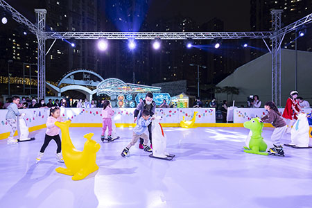 在北區舉辦的“幻彩冰雪樂園”於2023年12月9日至2024年1月14日期間逢周六日,在逸園賽狗場設置仿真溜冰場、燈光裝置、遊樂場、親子工作坊及互動遊戲。活動期間,居民和旅客在北區商戶消費滿指定金額,憑單據可換取仿真溜冰場或親子工作坊的參加機會,活動又聯動北區特色商戶推出美食券,促進社區經濟。