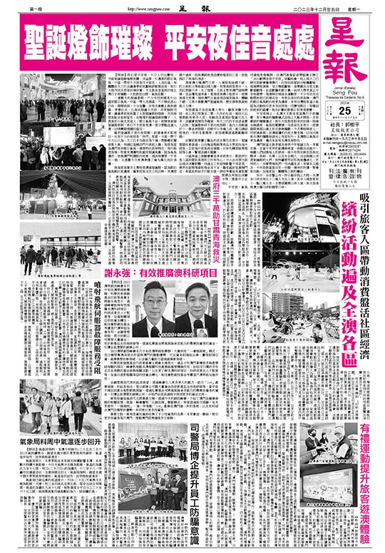 【特訊】經濟及科技發展局聯同旅遊局,抓緊聖誕節、除夕及元旦這個傳統旅遊旺季,推出及支持各區舉辦連串精彩節日活動。