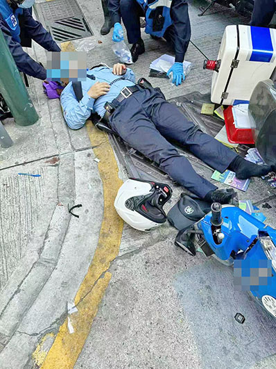 過界司機疑路口不讓先撞倒警方電單車 治安警背手受傷送院