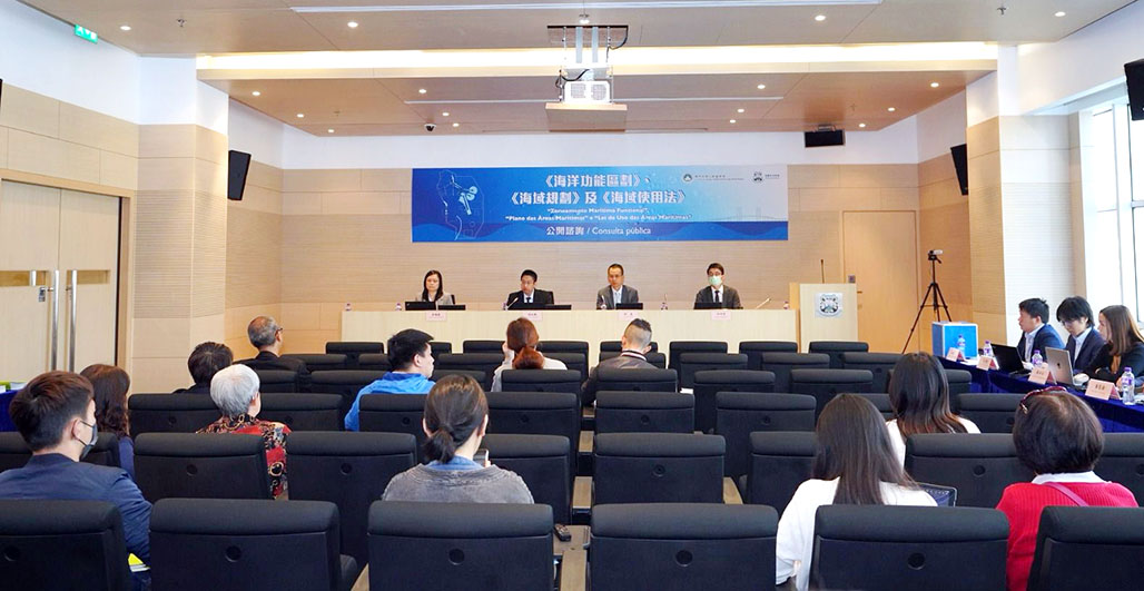 特區政府現正就《海洋功能區劃》、《海域規劃》及《海域使用法》進行公開諮詢,首場公眾諮詢會昨日下午假外港客運碼頭地面層演講廳舉行,海事及水務局副局長郭虔、胡柱鵬、研究及法律事務處處長郭趣歡、環保局環境規劃處處長吳時要出席主持。