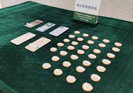 案情指出,於本月二十日深夜十一時許,司警接獲路氹某賭場報案,指當值的莊荷早前檢查兩張賭桌的珠盤,發現有二十五個面值一萬港元的籌碼懷疑是偽造,稍後發現有關假碼,是由同一賭場面值一百元的真籌碼改裝成,因兩款面值的籌碼顏色相似,容易魚目混珠。調查期間,賭場保安於吸煙室截獲涉案的姓潘、姓姚及兩名姓李的男子,而涉案的栢姓男子帶同三個同款的「假籌碼」,到賭場賬房兌換時被司警拘捕。