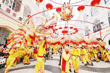 當日,238米長的大金龍及18頭醒獅、吉祥人物公仔、財神及金童玉女等將亮相大三巴牌坊,並前往議事亭前地和澳門居民和旅客拜年,派送金元寶送上節日祝福。隨後,大金龍巡演將沿東方斜巷、崗頂、龍嵩街、擺華巷、政府總部、卑第巷、聖老楞佐教堂、亞婆井前地、媽閣街、媽閣廟、西灣湖大馬路和南灣湖圓形地,最後抵達西灣湖廣場。
