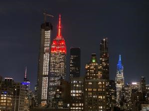 當晚,高約443米的帝國大廈樓頂如期點亮“中國紅”,慶祝農曆甲辰龍年的到來。自1976年以來,帝國大廈頂層一直保持著通過亮起不同顔色的燈光來紀念或慶祝各種節日或事件的傳統。