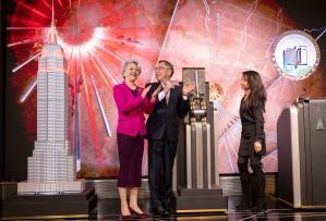 在帝國大廈一層,黃屏夫婦同克里斯蒂娜·邱還為帝國大廈2024年“歡樂春節”生蕭橱窗展揭幕。該展以“龍騰四海”為主題、中國皮影戲為設計靈感,結合四季元素,用豐富的視覺語言詮釋了中國龍文化的吉祥寓意。