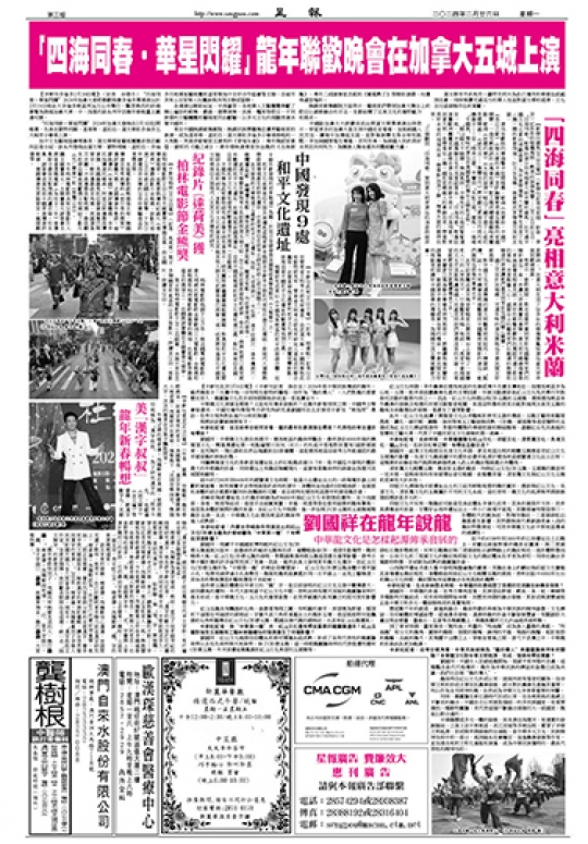 「四海同春•華星閃耀」龍年聯歡晚會在加拿大五城上演