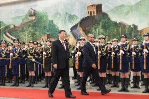 會談前,習近平在人民大會堂北大廳為阿迪昂舉行歡迎儀式。