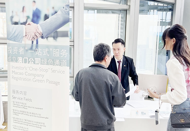 貿促局“投資者‘一站式’服務”協助海內外投資者在澳落實投資計劃,提供事前、事中、事後全流程“一條龍”服務,主要包括:事前投資環境諮詢、組織事前技術會議;事中安排專人 跟進落實投資計劃、協助辦理成立公司及牌照申領等行政手續;事後定期跟蹤項目落實情況,主動關切投資者並提供適切協助,包括跟進二次投資意向、商業配對需求等。