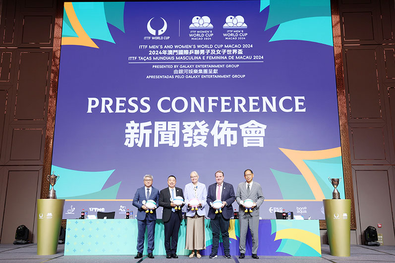 「2024年澳門國際乒聯男子及女子世界盃 ─ 由銀河娛樂集團呈獻」於本年4月15日至21日舉行,男、女子各48名世界頂尖乒乓球運動員會來澳角逐冠軍殊榮,當中包括衛冕本項賽事男子冠軍、2023年世界乒乓球錦標賽男子單打冠軍的樊振東,世界排名第一的王楚欽,衛冕本項賽事女子冠軍的陳夢,2023年世界乒乓球錦標賽女子單打冠軍、世界排名第一的孫穎莎,以及世青賽U19組男女子冠軍林詩棟和蒯曼;還有透過洲際盃和世界排名獲得參賽資格的球員。