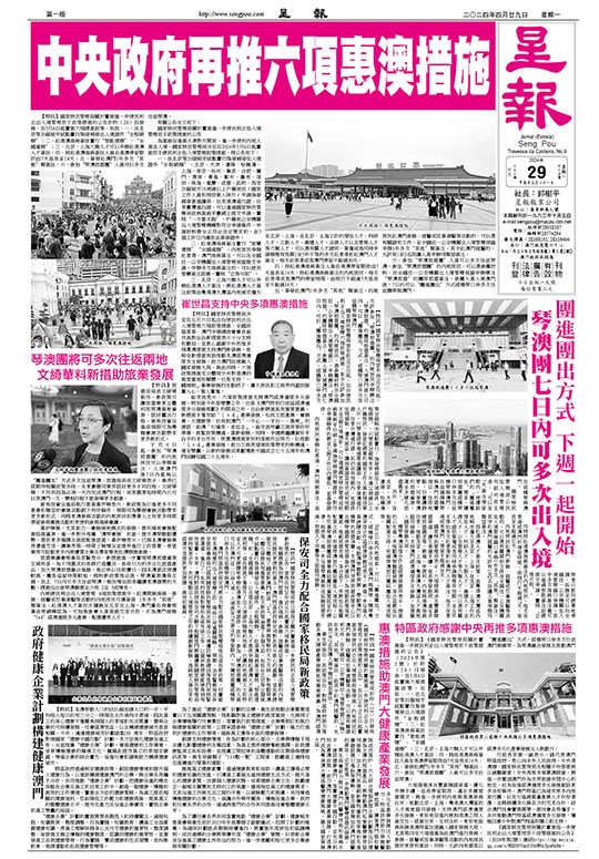 國家移民管理局宣布自5月6日起,出台便民利企出入境管理六項政策措施,其中允許參加“琴澳旅遊團”的內地居民,憑參團材料在全國任一公安機關出入境管理窗口,申辦標注“琴澳旅遊”的團隊旅遊簽注。參團人員入境澳門後七日內,可以“團進團出”方式,經橫琴口岸多次往返橫琴與澳門。