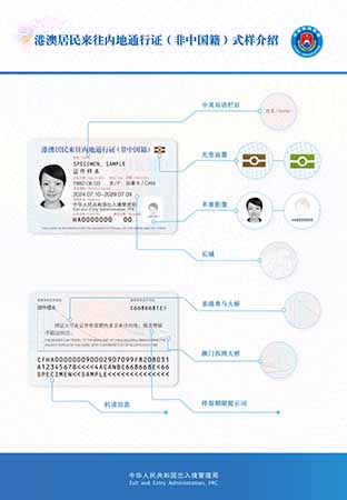 國家移民管理局公布,為進一步便利港澳永久性居民來往內地,國家出入境管理局决定依法為其簽發來往內地通行證件,港澳永久性居民中的非中國籍人員可自願申辦港澳居民來往內地通行證,首次申辦通行證由本人向出入境管理局委托的香港中旅集團或澳門中國旅行社提交申請,持證人在證件五年有效期內可以多次來往內地,每次停留不超過九十日,且持證人不得持該證在內地工作、學習或從事新聞採訪等活動,若需進行有關活動,應向外交部駐香港、澳門特派員公署或內地公安機關出入境管理機構,依法依規申請辦理簽證或停留居留證件。
