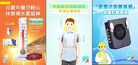 勞工局提醒工友須做好預防中暑的措施,包括:1.工友應穿著淺色及輕薄透氣的工作服;2.經常補充水份和電解質;3.僱主應留意溫度變化,合理安排工友輪換工作;4.安排長時間在高溫和濕度高的工作環境下的工友,適時在陰涼及通風良好的地方小休,並提供足夠飲用水,以防工友中暑。