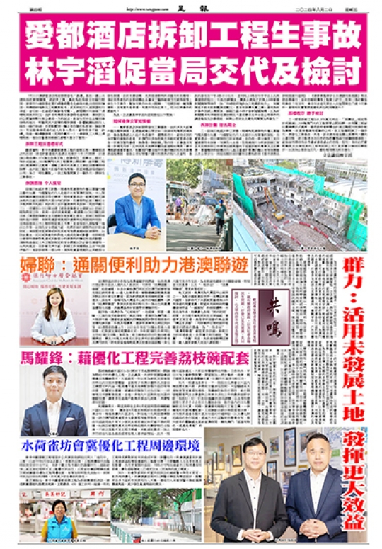 為免存在積水問題的未發展土地成為蚊蟲孳生的環境,梁鴻細促請當局加強未發展土地的環境整治,以及從速清除登革熱的病媒蚊孳生源,防範本澳爆發登革熱,同時檢視有無條件完善及更新相關制度及管理機制,維護好本澳的公共環境。