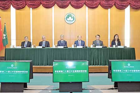 賀一誠指出,二十屆三中全會是在以中國式現代化全面推進強國建設、民族復興偉業的關鍵時期,召開的一次具有里程碑意義的會議,全會通過了《關於進一步全面深化改革、推進中國式現代化的決定》,系統部署了一系列戰略性、全局性重大改革舉措。學習好貫徹好三中全會精神是澳門特區當前及今後一個時期的重要任務,特區政府各級官員必須帶頭深入學習,把思想和行動統一到中央決策部署上來,結合習近平主席關於澳門工作的重要講話精神,結合澳門實際,結合自身工作職責,融會貫通,務求實效,將對三中全會精神的學習理解轉化為推進澳門向前發展的強大力量。