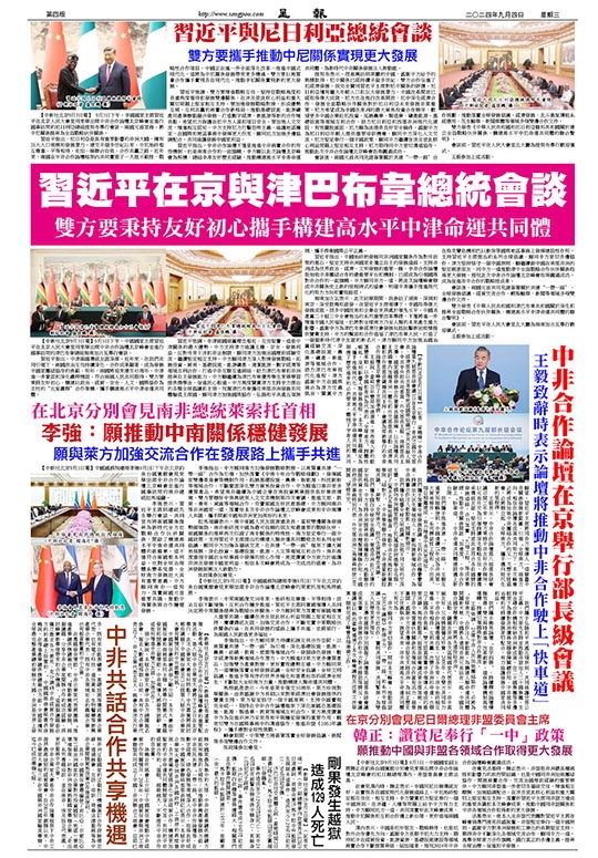 【中新社北京9月3日電】9月3日下午,中國國家主席習近平在北京人民大會堂同來華出席中非合作論壇北京峰會並進行國事訪問的津巴布韋總統姆南加古瓦舉行會談。