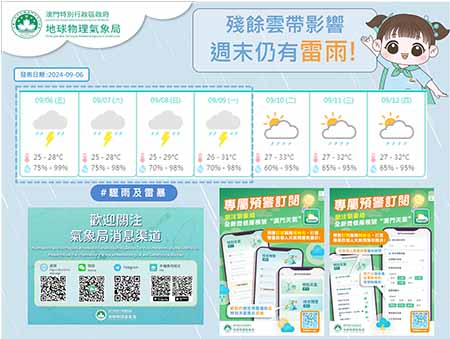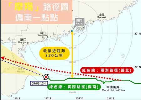 超強颱風「摩羯」成為本澳今年首個八號風球,隨著「摩羯」逐漸遠離,氣象局於昨日(六日)下午二時,改發三號風球。氣象局指出,超強颱風「摩羯」正逐漸遠離本澳,受到「摩羯」的外圍環流以及雨帶影響,本澳昨日仍有驟雨及雷暴,間中吹六至七級風及有陣風,雖然已改發三號風球,但市民仍需提防強風帶來的影響,並密切留意氣象局最新天氣資訊。