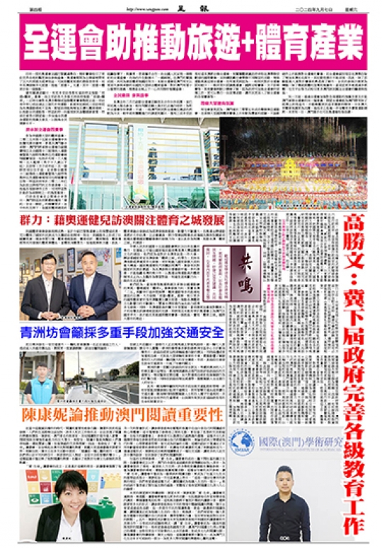 日前,終審法院前院長岑浩輝正式宣佈參選第六任行政長官,在宣佈參選行政長官的新聞發佈會上提出五點施政理念,其中一點與教育及人才發展有關。指出“將致力於發揮獨特優勢,以更實舉措做好橫琴粤澳深度合作區建設這篇文章,主動和精準對接國家戰略,打造澳門國際高端人才集聚高地,把國際大都市金名片擦得更亮,在融入國家發展大局中作出更大貢獻。”長期研究及關注教育問題的跨領域學者、國際(澳門)學術研究院政策研究主任高勝文樂見候選人關心教育發展,認同其“奮發同行‧持正革新”的施政理念,表示現時非高等教育及高等教育領域均有急需改善的地方,他冀下屆政府針對現存教育問題並進一步完善各級教育工作,以早日實現“教育之城”的目標。