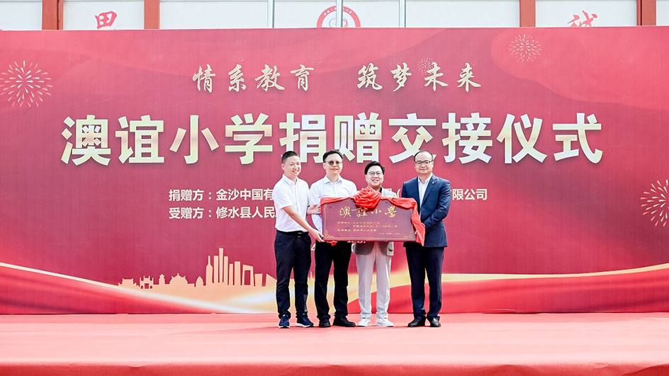 金沙中國有限公司行政副主席王英偉博士表示:「作為一家扎根澳門的企業,金沙中國一直以來肩負企業社會責任,深入本澳社區,與社會各界同根同心。澳誼小學援建項目是我們響應國家鄉村振興戰略部署的積極實踐,也是我們支持澳門特區政府援助江西省修水縣的鄉村振興工作的重要舉措。我們很榮幸能參與其中,並與中國土木工程(澳門)有限公司攜手合作,為江西省修水縣的教育事業添磚加瓦。透過振興修水縣的基礎教育條件,我們不僅能為當地孩子創造更好的學習環境,更能為其長遠經濟社會發展奠定堅實基礎,意義深遠。期望兩地情誼永固,並藉此延展金沙中國社區義務工作者的關愛精神,展現愛國愛澳的高尚情操。」