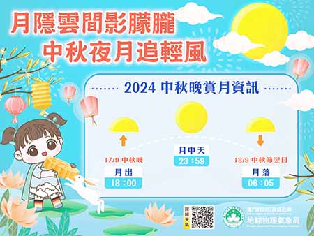 氣象局指出,受高空擾動影響,預料本澳週末期間有幾陣驟雨,週日(十五日)可能有雷暴。中秋節期間,該高空擾動將有所減弱,但預料會轉受一股偏東氣流影響,引致中秋節晚間的雲量較多,屆時公眾或許需要一點耐心,靜候最佳的賞月時機出現。在此,氣象局並提醒,由於當晚(十七日)還是預計出現超級月亮的日子,氣象局祝願市民都可欣賞到這明亮的圓月。
