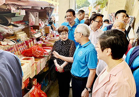 昨日(七日)上午十時,第六任行政長官候選人岑浩輝在澳門街坊總會會長吳小麗、澳門工聯總會副會長梁偉峰、澳門婦聯總會副理事長庄玲玲、澳門中區南區工商聯會會長李卓君、下環坊會會長張麗珍、澳門漁民互助會會長陳明金等人陪同下,探訪了沙梨頭至媽閣一帶的內港片區。