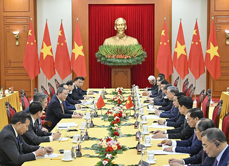 李強指出,中方願同越方更高質量、更高水平推進各領域合作,夯實“六個更”發展格局。希望雙方同步推進鐵路、高速公路、口岸基礎設施“硬聯通”和智慧海關等“軟聯通”,為提昇貿易投資便利化水平、維護供應鏈穩定暢通提供堅實支撐。中方願同越方持續做大經貿合作蛋糕,積極研究試點建設跨境經濟合作區,拓展信息技術、新能源、數字經濟、重要礦產等新興領域合作,深化人文交流。積極開展三大全球倡議合作,共同推進平等有序的世界多極化和普惠包容的經濟全球化,維護好、促進好亞洲繁榮安寧。