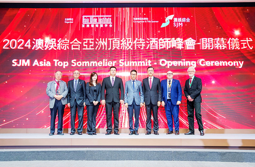 由亞洲葡萄酒學會主辦、澳娛綜合合辦及冠名贊助之「2024 澳娛綜合亞洲頂級侍酒師峰會」於本月十四日至十八日舉行,昨日在旅遊塔會展娛樂中心舉行開幕式,主禮嘉賓包括中聯辦經濟部處長郭曉輝、旅遊局副局長程衛東、招商投資促進局會展產業拓展處經理翟蕙珊、澳娛綜合首席營運總監卓河祓、國際侍酒師公會主席 Brian Julyan 、國際侍酒師公會首席執行官 Ronan Sayburn 、中國年度酒單大獎創辦人 Robert Hirst ,以及亞洲葡萄酒學會創辦人及會長林志帆。
