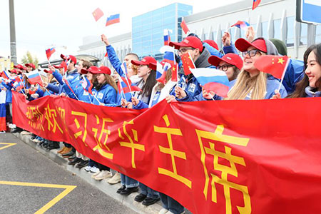 中國駐俄羅斯大使張漢暉也到機場迎接。
