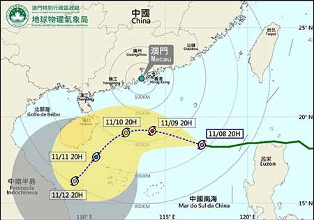 氣象局預料,熱帶氣旋「銀杏」週末(九日)以偏西方向橫過南海北部,下週初轉向西南移動,大致趨向海南島東南海域。按照現時預測路徑,「銀杏」將於週六至週日(九日至十日)在本澳以南三百五十公里附近掠過,在東北季風共同影響下,本澳風力將會有所增強,雲量增多及有幾陣驟雨。