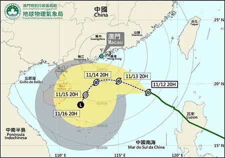 截至昨日晚上八時,強烈熱帶風暴桃芝正集結在澳門東南約五百二十公里處,以時速約十公里向西北偏西方向移動,橫過南海北部。「桃芝」強度及路徑仍存在不確定性,本局將密切監察「桃芝」的發展及動向,適時評估更高熱帶氣旋信號的可能性。