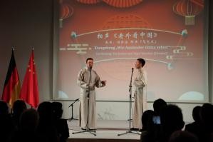 柏林中國文化中心主任孫勤航表示,曲藝作為中國傳統文化的瑰寶,以其獨特的藝術形式、豐富的表現方式,生動傳達著中國人民的精神風貌和生活哲學。自2013年起柏林中國文化中心與中國曲藝家協會合作,迄今已在德國共同舉辦9屆“中國曲藝周”。希望通過這種跨文化的藝術對話,進一步加強中德兩國人民之間的友好情誼和心靈相通。 晚會由中國曲藝家協會副主席、國家一級演員張旭東主持,眾多曲藝表演藝術家帶來了精彩紛呈的節目,涵蓋相聲、琴書、南音、蘇州彈詞等多種藝術形式。