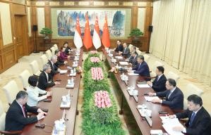 習近平積極評價李顯龍擔任新加坡總理期間帶領新加坡取得顯著成就,並長期關心和支持中新合作。習近平指出,去年我們共同確立了中新全方位高品質的前瞻性夥伴關係,為兩國關係發展明確了戰略方向。明年是中新建交35周年,雙方要密切高層往來,進一步加強發展戰略對接,深化各領域合作,為兩國人民帶來更多福祉,為地區和平繁榮作出更大貢獻。
