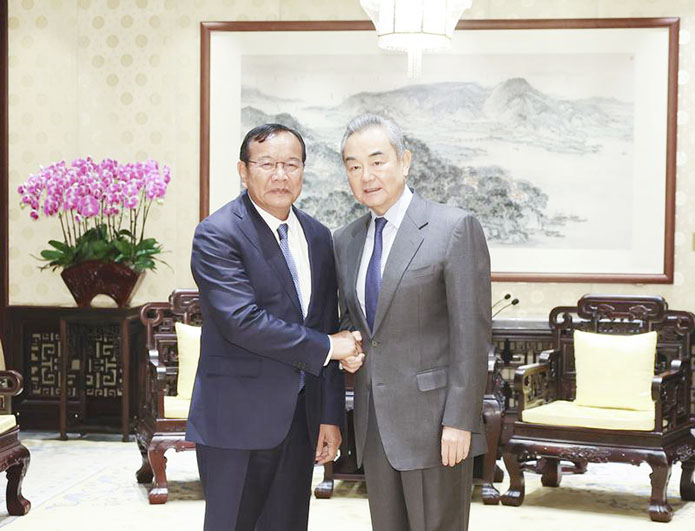 王毅表示,中柬友誼歷經國際風雲考驗,歷久彌堅。在兩國領導人戰略引領下,中柬鐵杆友誼進入新階段。中方願同柬方密切高層交往,推進新時代中柬命運共同體建設,以中柬高水準戰略協作應對風險挑戰,捍衛兩國正當權益,促進地區和平穩定。