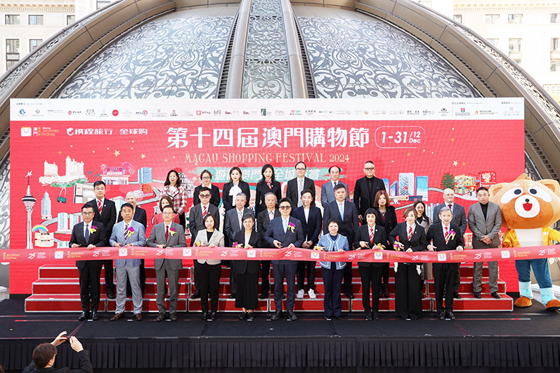 第十四屆澳門購物節開幕典禮暨澳門國際品牌企業商會十五週年慶典及換屆就職典禮,昨午在上葡京綜合度假村綠茵勝境花園舉行,出席主禮嘉賓包括:中聯辦經濟部處長孫耀華、旅遊局局長文綺華、經濟及科技發展局代局長陳子慧、消費者委員會消費權益保護廳廳長余琴、活動籌委會主席兼澳門國際品牌企業商會主席蕭婉儀、活動籌委會副主席兼澳門旅遊零售服務業總商會理事長葉榮發、活動籌委會副主席兼澳門零售管理協會主席楊寶莉、攜程金融信息服務副總裁劉子寶、活動籌委會總幹事兼澳門國際品牌企業商會理事長董志遠等。