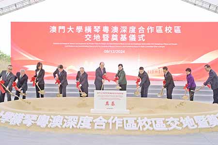 【特訊】行政長官賀一誠昨(9)日出席澳門大學橫琴粵澳深度合作區校區交地暨奠基儀式。他致辭時表示,澳大深合區校區的建設,將進一步推動澳門更好、更快融入國家發展大局,標誌着澳琴兩地聯動發展、深度合作邁向新的里程碑,具有重大意義。