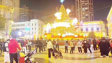 【特訊】臨近聖誕節,本澳多個旅遊景點佈置了聖誕裝飾,增添節日氣氛,吸引了不少市民旅客前往打卡。新馬路一帶人流暢旺,有旅客表示專程來感受本澳聖誕氣氛。昨日(二十三日)是冬至補假,根據治安警臨時數據,截至昨日晚上九時,本澳各口岸錄得超過五十三萬七千多人次出入境,當中入境旅客超過十七萬六千人次。