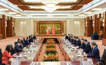 趙樂際表示,中秘友誼源遠流長。不久前,習近平主席赴秘魯出席亞太經合組織第三十一次領導人非正式會議並對秘魯進行國事訪問。兩國元首就中秘關係的戰略性、全域性問題深入溝通,達成重要共識。中方願同秘方一道努力,落實元首外交重要成果,推動中秘全面戰略夥伴關係不斷向前發展,更好造福兩國和兩國人民。