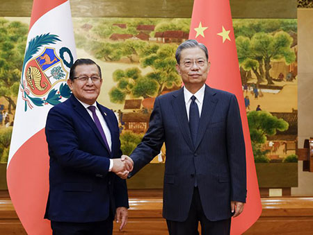趙樂際指出,深化中秘友好合作,是兩國人民共同期待,立法機構要為促進兩國關係行穩致遠貢獻力量。秘魯長期恪守一個中國原則,中方對此表示讚賞。中國全國人大願同秘魯國會加強高層、專門委員會、雙邊友好小組、人大代表和議員之間的交流交往,深化治國理政經驗互學互鑒,增進相互瞭解和友誼,支持彼此走符合各自國情的發展道路。錢凱港是中秘合作的標誌性專案,有助於秘魯打造銜接陸海、聯通亞洲和拉美的互聯互通格局,促進中秘、中拉高品質共建“一帶一路”。希望秘魯國會繼續關心和支持錢凱港建設。中秘在能礦、基礎設施建設、通信等領域開展了富有成效的合作,正積極探討在數字經濟、綠色發展、人工智慧等領域拓展合作。希望兩國立法機構共同為中秘務實合作營造良好法治環境。