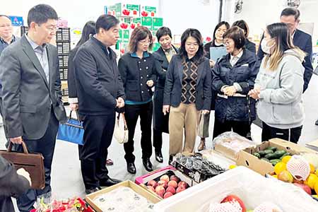 【特訊】春節臨近,國家商務部對外貿易司李娜副司長今(十六日)率考察團來澳開展農副產品供澳調研工作,與市政署市政管理委員會周偉迎主席及吳秀虹委員等進行會談,並實地考察澳門新批發市場及沙梨頭街市,了解內地農副産品供應情況,保障節日期間對澳門農副產品穩定供應和質量安全。考察團成員包括國家商務部、海關總署和廣東省商務廳的代表。