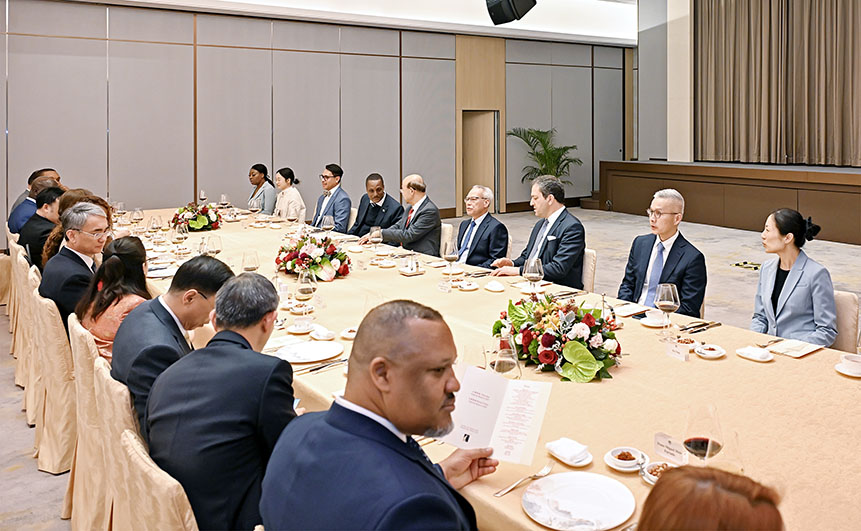 【特訊】行政長官岑浩輝昨(21)日晚上宴請外國駐澳總領事和中國— 葡語國家經貿合作論壇(澳門)常設秘書處官員及派駐代表。他致辭時表示,澳門特區將繼續大力推進中國和葡語系國家合作、不斷深化與東南亞國家的合作,以及全面推進與各國各領域務實合作。