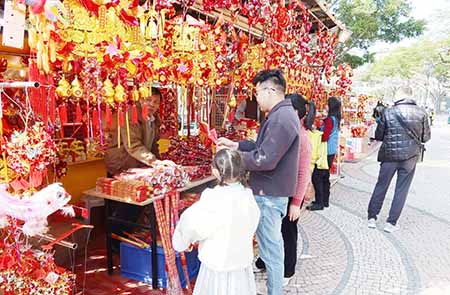 有市民一家大細到場感受節日氣氛,他表示除買風車轉運,亦會到媽閣廟上香祈求來年身體健康等,他又稱會向小朋友介紹新年不同物品的意義;香港旅客倪先生認為,場地除設置傳統特色攤檔外,亦可設小食等攤位,充分利用媽閣廟前地空間。