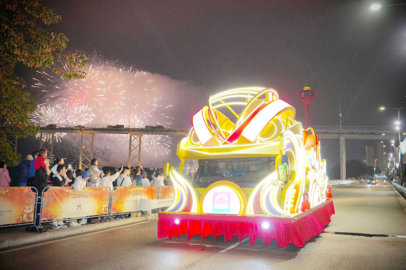 巴士方面,2月8日下午5時起至晚上11時,多個位處花車巡遊路線的巴士站點臨時停用,1(往關閘)、2(往媽閣)、3A(往司打口)、6A(往山頂醫院)、7(往東方明珠)、8(往回力、往工業園街)、8A(往工業園街、往亞馬喇前地)、9(往牧場街)、9A(往青茂)、10B(往殷皇子馬路)、12(往外港碼頭)、18(往媽閣)、18B(往媽閣)、19(往新馬路)、22(往柯維納馬路)、23(往旅遊塔)、28B(往媽閣、往青洲)、29(往青洲)、30(往氹仔中央公園)、34(往海洋花園、往青洲坊)及101X(往港珠澳大橋邊檢大樓)共21條巴士路線需改道行駛及調整停靠站點。有關巴士服務的臨時安排,詳情可留意兩巴網頁。