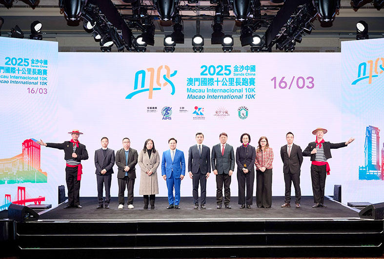 由體育局、金沙中國有限公司及澳門田徑總會舉辦的「2025金沙中國澳門國際十公里長跑賽」將於下月十六日舉行。賽事組委會昨午舉行新聞發佈會公佈賽事詳情及報名安排。出席嘉賓包括體育局局長張子軒、金沙中國有限公司行政副主席王英偉、澳門田徑總會理事長陳步倩、體育局代副局長李詩靈、及體育委員會委員等。