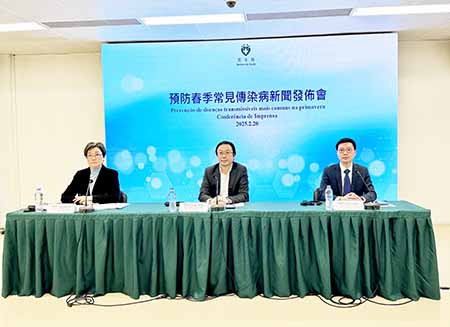 曾潭飛表示,本澳在年初已進入流感高峰期,在社會文化司的統籌下,衛生局聯同其他政府部門、社團及機構,已於一月部署並實施了一系列跨部門的防控流感工作。根據最新的監測數據顯示,新春假期後流感病例有所回落,但預期二月份仍有一定水平的流行;同時,本澳春季不同的傳染病亦有一定的流行,呼籲居民繼續保持警惕。