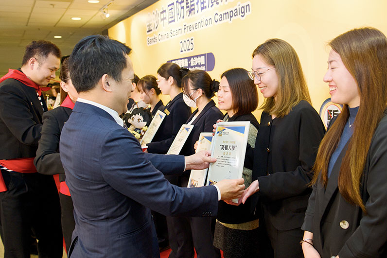 【特訊】為進一步提高博企員工的防騙意識,司警局日前應金沙中國有限公司邀請,共同舉辦「金沙中國防騙推廣活動2025」。活動期間,司警局在金沙旗下多個娛樂場後勤區設置互動體驗及攤位遊戲,向員工推廣防騙資訊,並於活動中頒授「防騙大使」榮譽稱號予15名員工。通過為期四天的路演活動,期望向相關員工普及最新防騙資訊、增強防騙意識,同時透過「防騙大使」及參與活動的員工將防騙訊息傳遞至身邊同事及親友,實現警民攜手,共建社區防騙屏障。